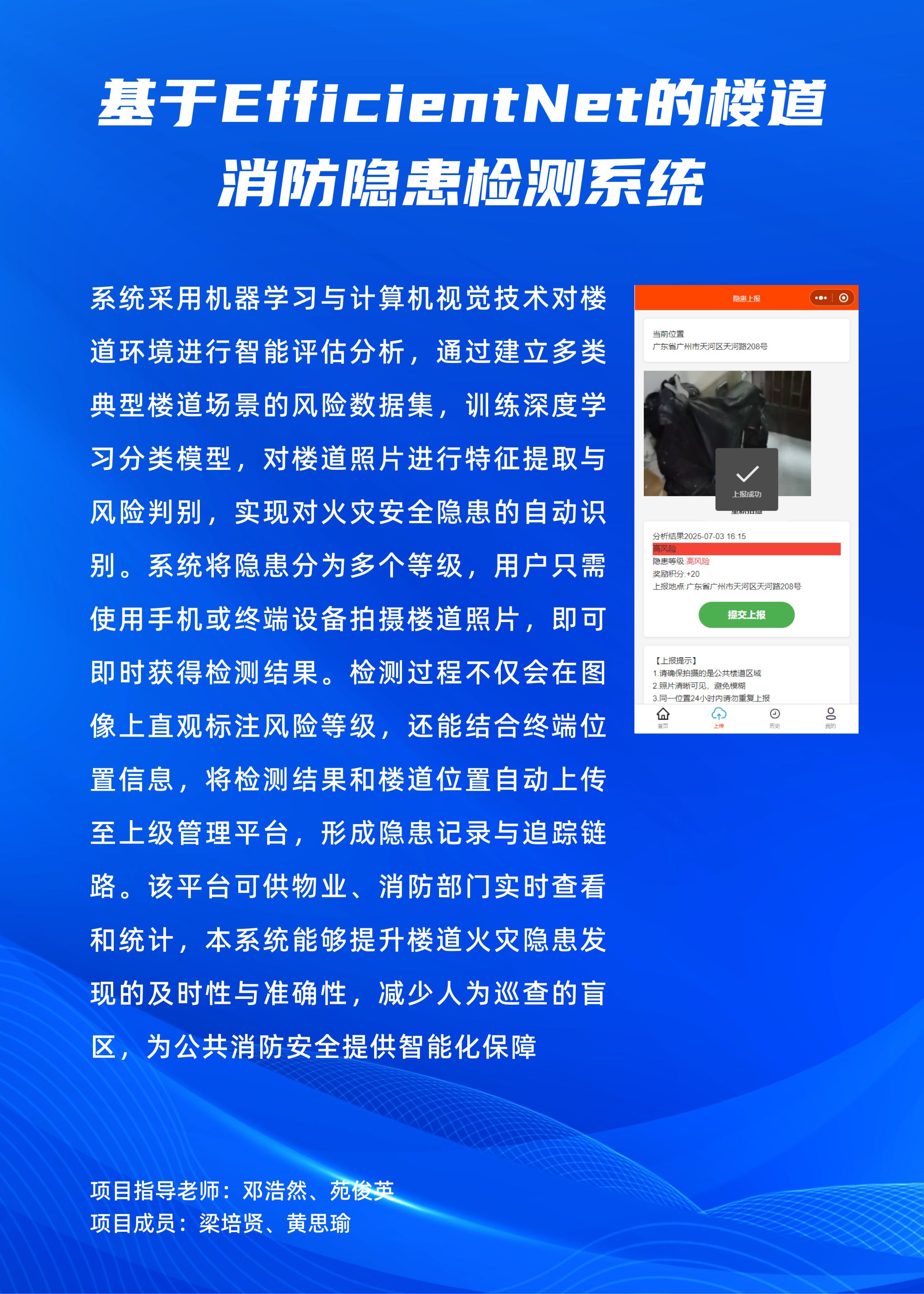 简介:系统采用机器学习与计算机视觉技术对楼道环境进行智能评估分析,通过建立多类典型楼道场景的风险数据集,训练深度学习分类模型,对楼道照片进行特征提取与风险判别,实现对火灾安全隐患的自动识别。系统将隐患分为多个等级,用户只需使用手机或终端设备拍摄楼道照片,即可即时获得检测结果。检测过程不仅会在图像上直观标注风险等级,还能结合终端位置信息,将检测结果和楼道位置自动上传至上级管理平台,形成隐患记录与追踪链路。该平台可供物业、消防部门实时查看和统计,本系统能够提升楼道火灾隐患发现的及时性与准确性,减少人为巡查的盲区,为公共消防安全提供智能化保障。
